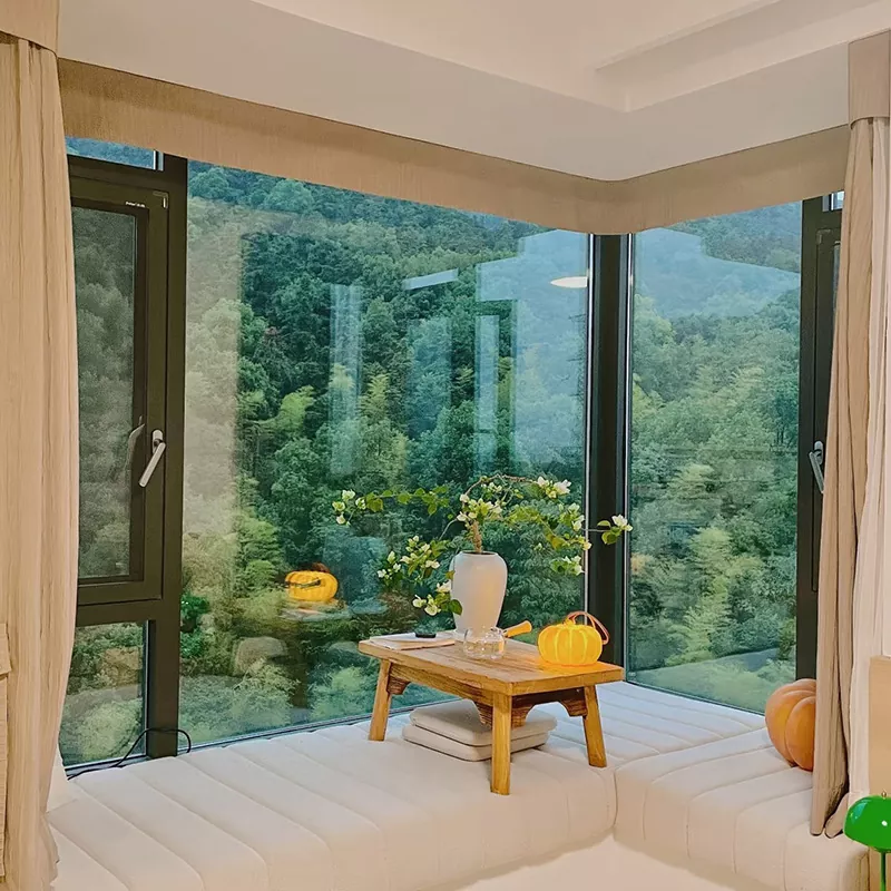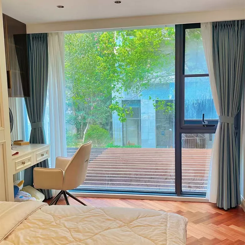 이 디자인은 "양극 처리된 알루미늄 합금 프레임 + 강화 유리" 구조를 특징으로 하며 코너 어셈블리가 통합되어 있습니다. 응력을 고르게 분산시켜 경량 프레임을 유지하면서 안정성을 보장합니다. 여닫이창이 장착되어 있습니다. 외부 또는 숨겨진 알루미늄 합금 힌지, 90° 각도로 열리고 닫힐 때 단단히 밀봉됩니다. 슬라이딩 창문은 부드럽게 미끄러지는 조용한 트랙 시스템을 갖추고 있어 소음을 줄이고 공간을 절약합니다. 아파트.